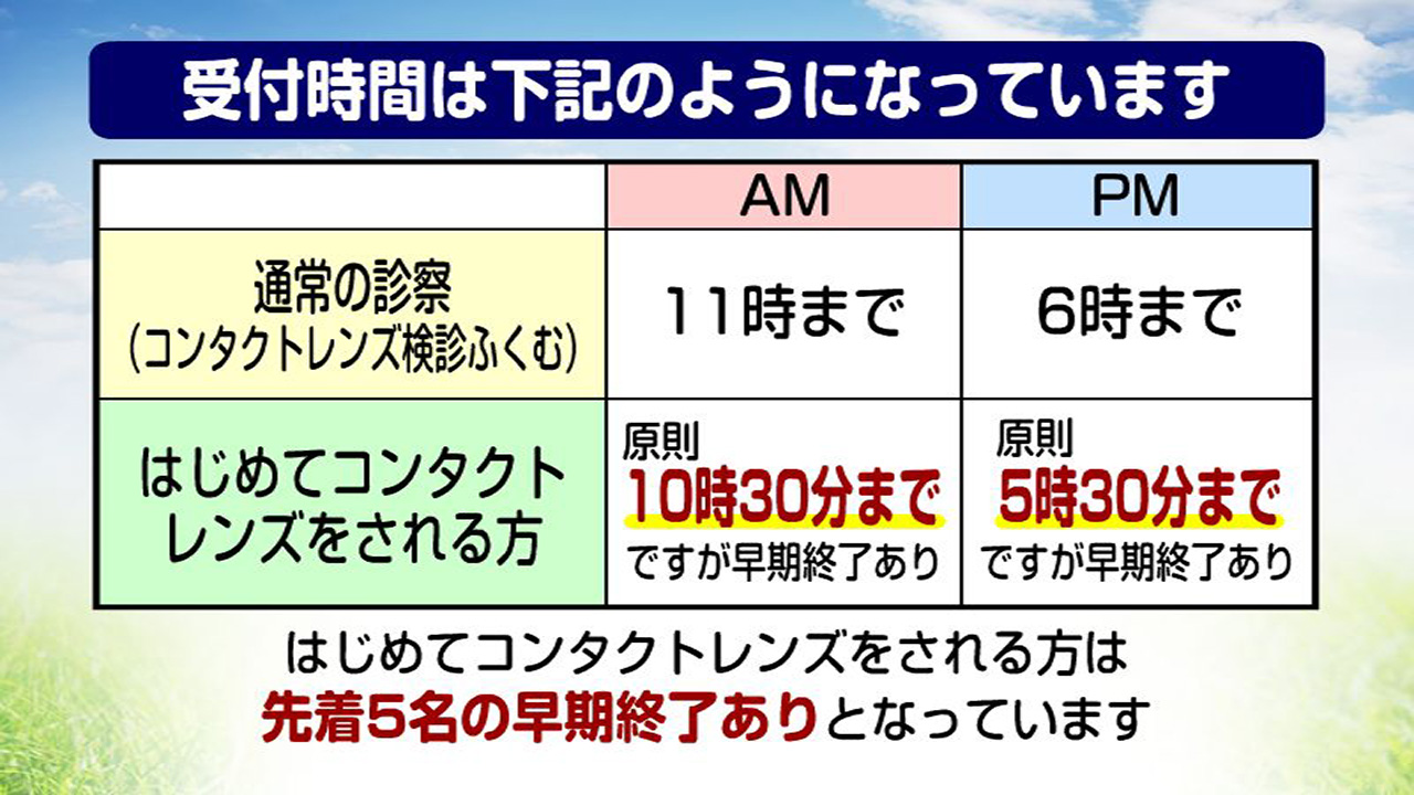 コンタクトレンズの受付時間は通常の診察と同じ、